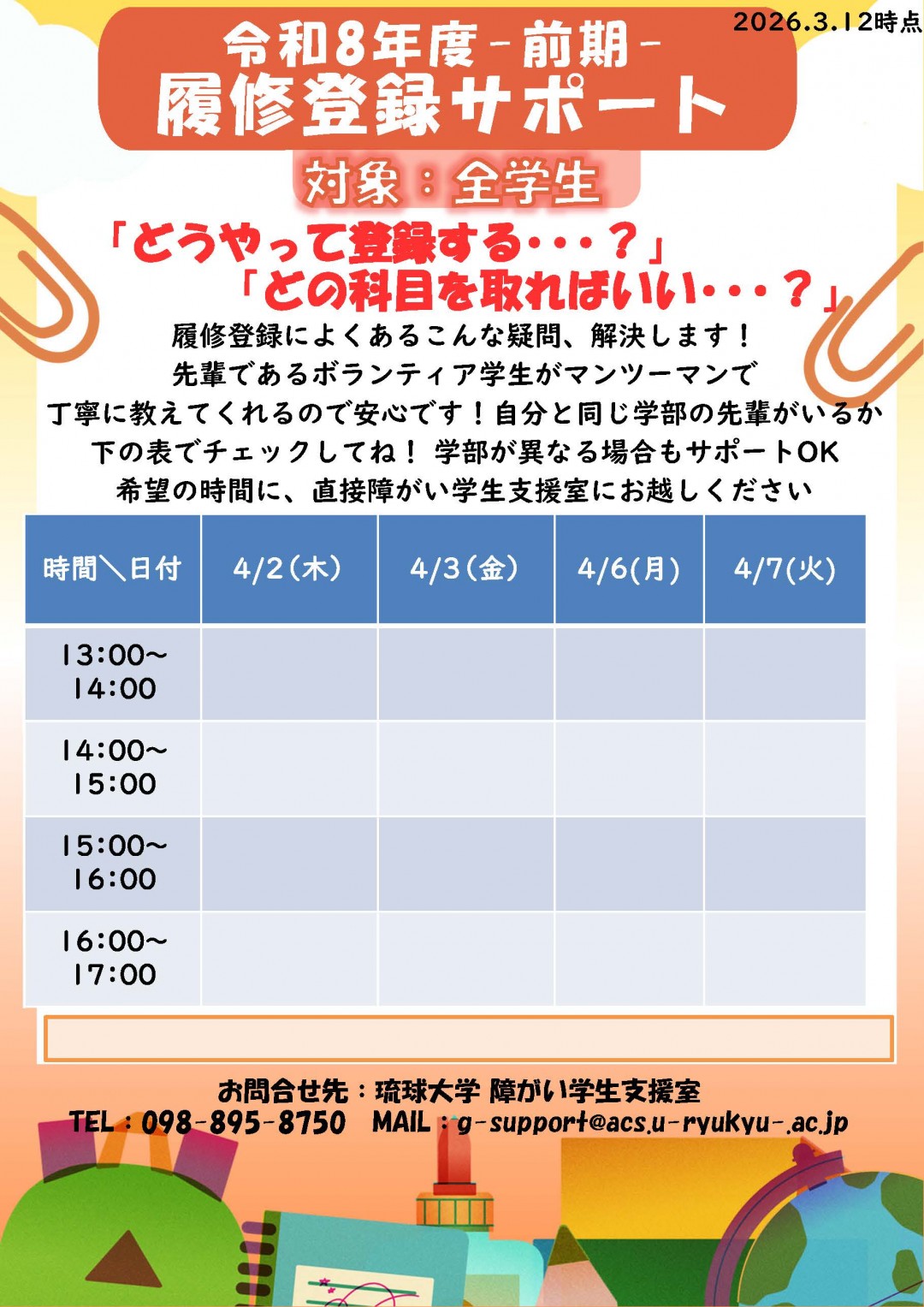 Copyright © University of the Ryukyus Office for Supporting Students with Disabilities