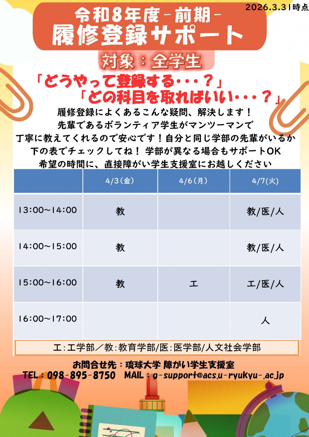 令和8年度前期の授業開始に向けて、履修登録サポートを実施します。